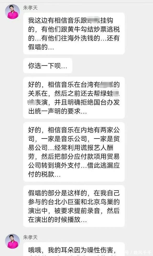 最近朱孝天在群里发了好多消息,一部分人觉得他是在为自己叫屈,也有不少人被他说的内容震惊。他没有拐弯抹角,从公司行为、资金来路到平时大家最关心的假唱,他一样没放过。有关立场的问题,是他说的第一点。他提到公司曾经表态不明确,还给对手表演,没说哪个场合,但这样的话出来确实让外面的人浮想联翩。粉丝群立刻变得热闹起来,很多人开始找相关时间和细节。